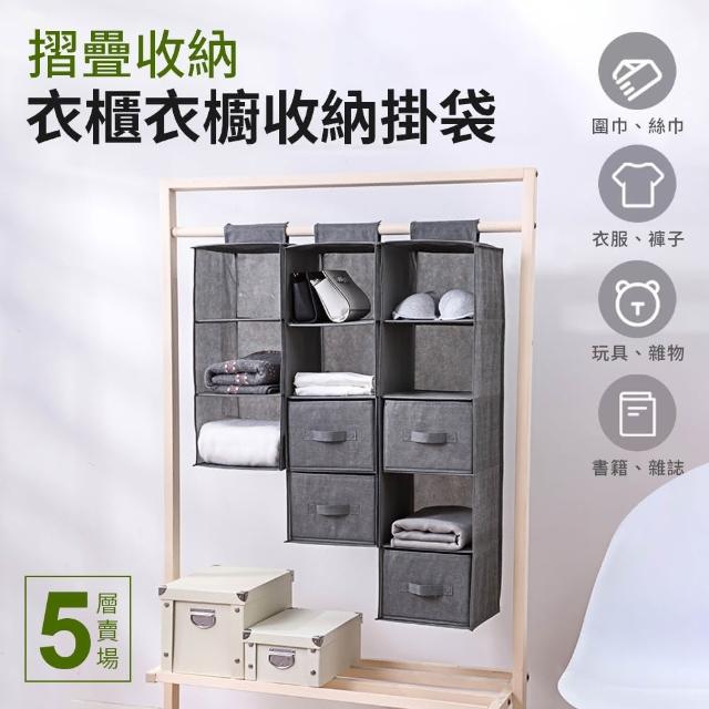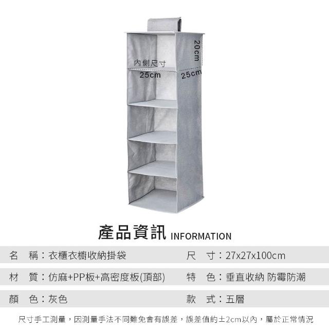 JOEKI衣櫃衣櫥收納掛袋-五層棉麻 抽屜式 掛袋 棉麻掛袋 無印風 衣櫃收納 收納掛袋 衣物收納