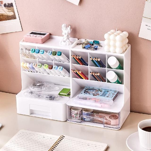 JOEKI多功能斜插式筆筒簡約筆筒 斜插筆筒 抽屜筆筒 桌面收納盒 桌面收納 文具收納 多格筆筒