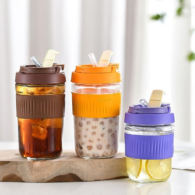 JOEKI隨行玻璃咖啡杯耐熱玻璃隨身杯 隨行杯 玻璃水壺 吸管水杯 隨手杯 外帶杯 手提杯 環保杯
