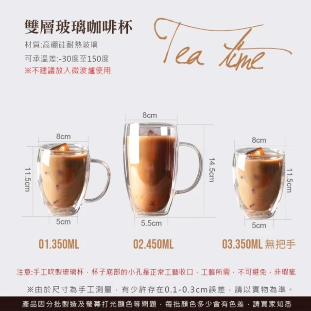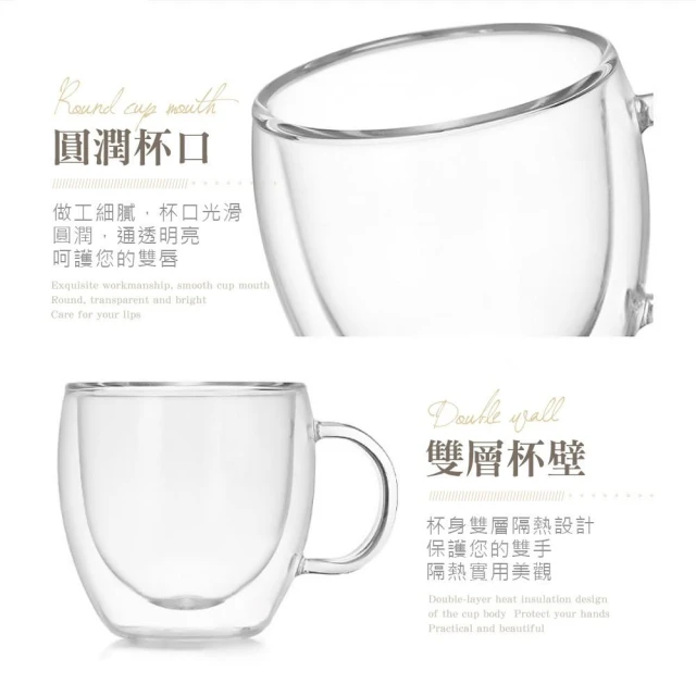 JOEKI雙層隔熱玻璃杯-350ml 400ml 咖啡杯 馬克杯 耐熱玻璃 高硼矽帶把玻璃杯 咖啡杯 隔熱防燙杯