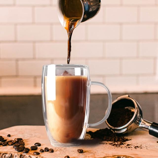 JOEKI雙層隔熱玻璃杯-450ml咖啡杯 馬克杯 耐熱玻璃 高硼矽帶把玻璃杯 咖啡杯 隔熱防燙杯