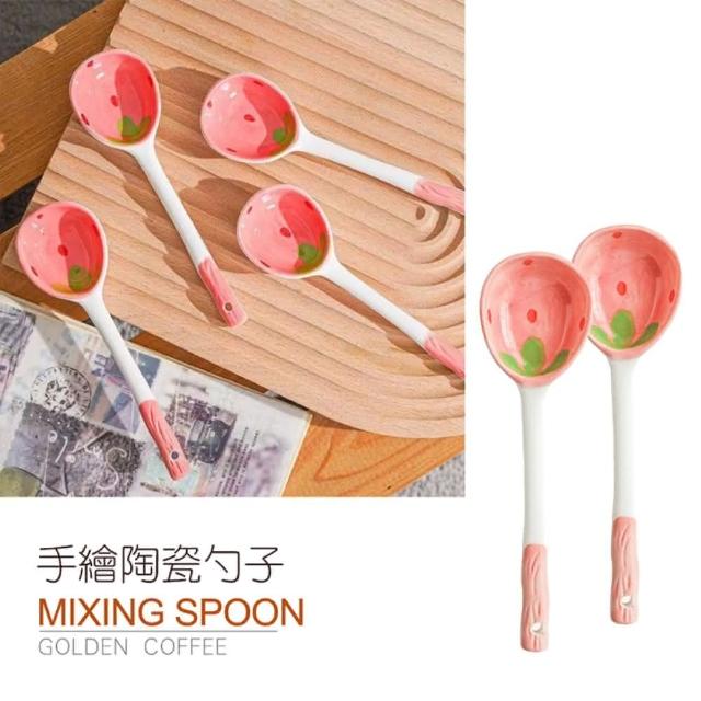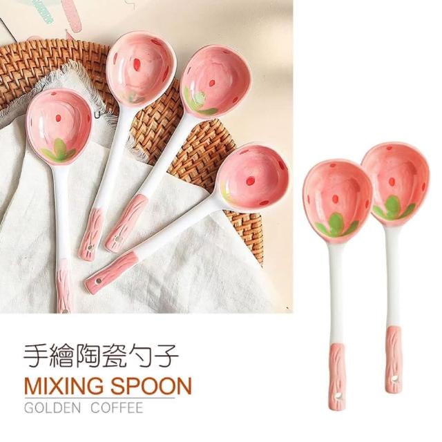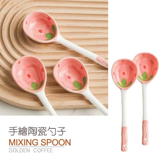 JOEKI草莓勺子可愛陶瓷勺子 ins高顏值 湯勺 長柄湯勺 手繪陶瓷勺子 廚房用具 大湯匙 餐具