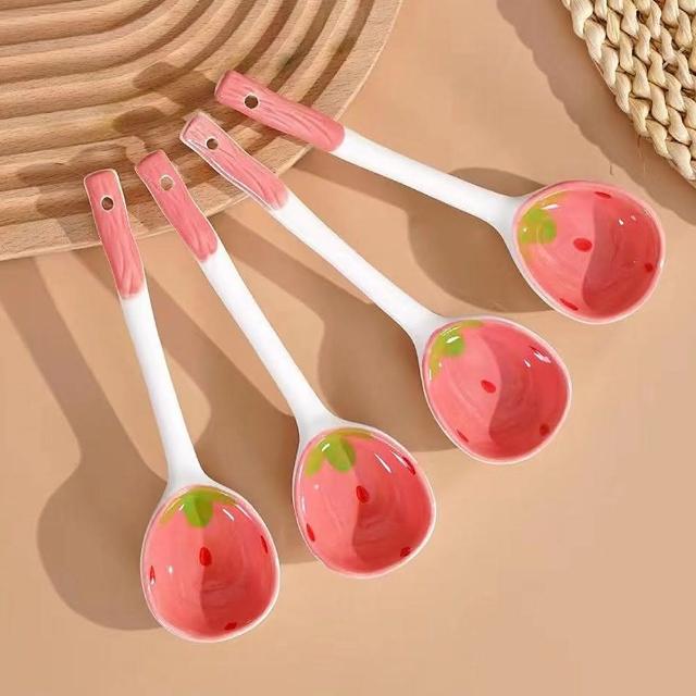 JOEKI草莓勺子可愛陶瓷勺子 ins高顏值 湯勺 長柄湯勺 手繪陶瓷勺子 廚房用具 大湯匙 餐具