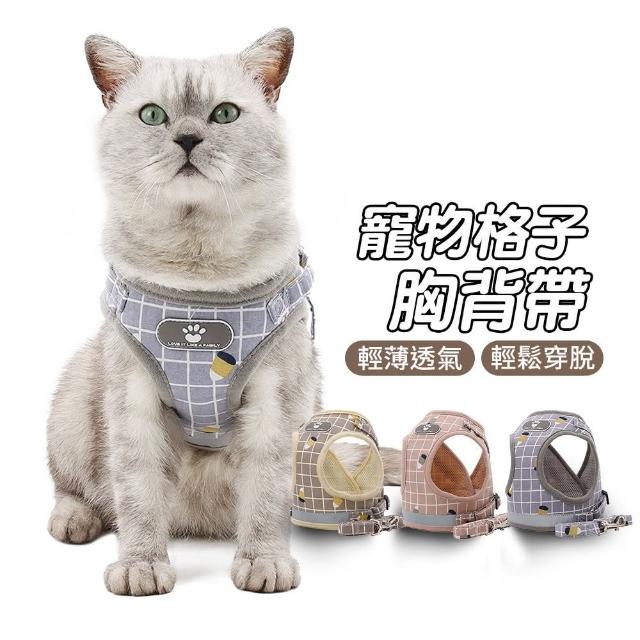 JOEKI寵物格子胸背帶寵物胸背帶 貓胸背帶 背心 貓咪牽引繩 遛貓繩 狗胸背 胸背帶 貓牽繩