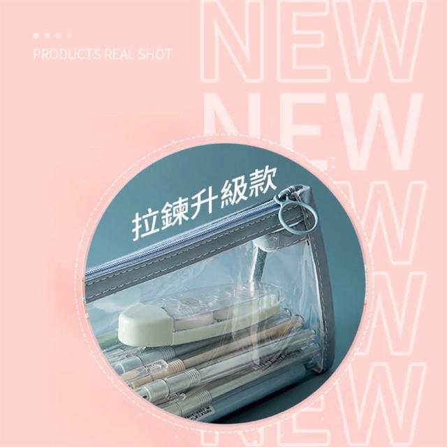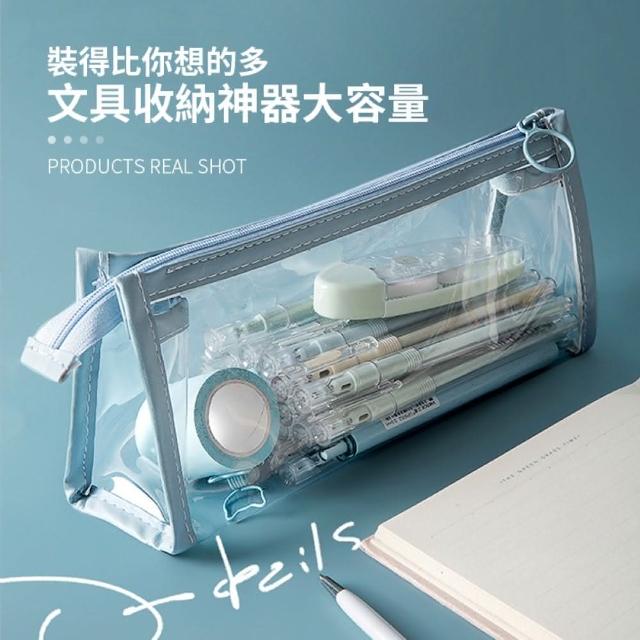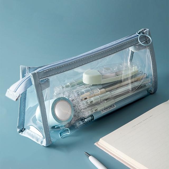 JOEKI透明三角筆袋莫蘭迪色 鉛筆盒 防水筆袋 大容量拉鍊 文具袋 拉鍊筆袋 文具收納 文青筆袋