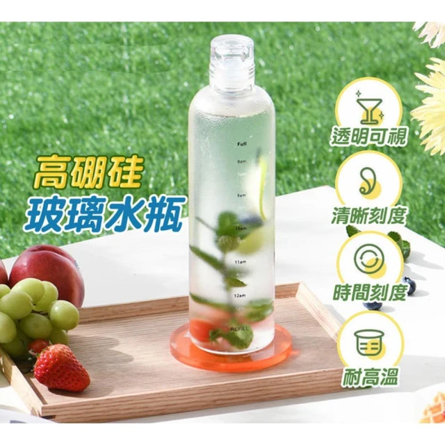 JOEKI玻璃水瓶ins風 簡約 時間刻度 玻璃杯 環保水壺 水杯 水壺 水瓶 隨行杯 透明水壺