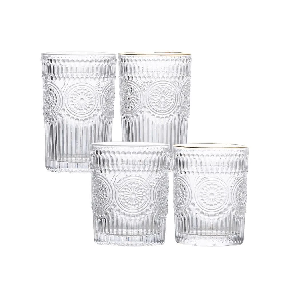 JOEKI歐式復古玻璃杯-金邊大ins 歐式玻璃杯 復古水杯 果汁杯 浮雕玻璃杯 太陽花玻璃杯 玻璃杯