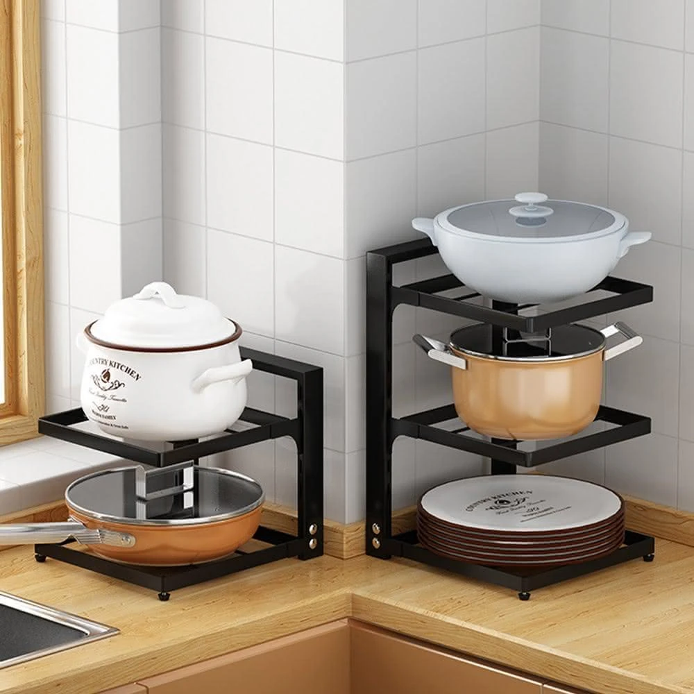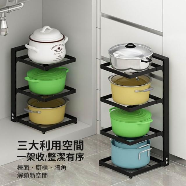 JOEKI可調節置物鍋架高度可調 鍋具收納架 廚房收納架 鍋具收納層架 廚房置物架 廚房鍋架 廚具收納架