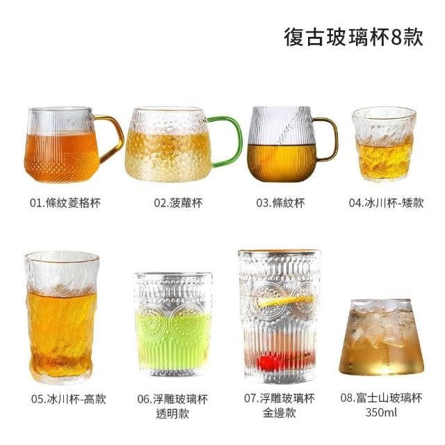 JOEKI復古玻璃杯 透明玻璃杯 8款任選/1入玻璃杯 水杯 浮雕玻璃杯 果汁杯