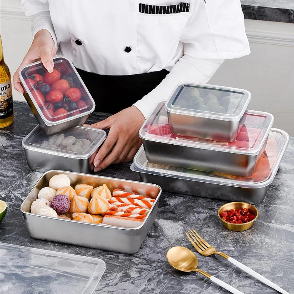 JOEKI不鏽鋼帶蓋保鮮盒 大小共12入組餐盒 便當盒 帶蓋保鮮盒 密封盒 保鮮盒 長型保鮮盒