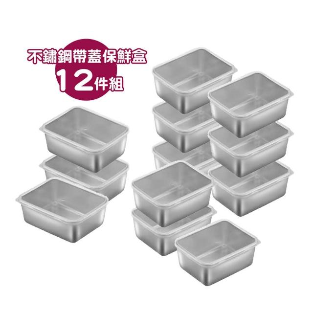 JOEKI不鏽鋼帶蓋保鮮盒 大小共12入組餐盒 便當盒 帶蓋保鮮盒 密封盒 保鮮盒 長型保鮮盒