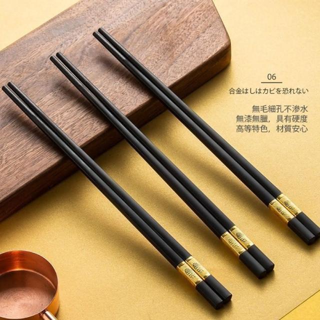 JOEKI日式黑色筷子-10雙六角尖頭筷 合金筷 耐熱筷 飯店筷子 料理筷