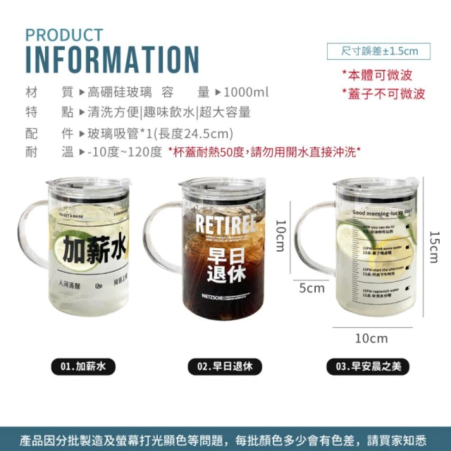 JOEKI大容量吸管玻璃杯大容量吸管玻璃杯 水杯 趣味水杯 ins風大水杯 吸管水杯 玻璃水杯