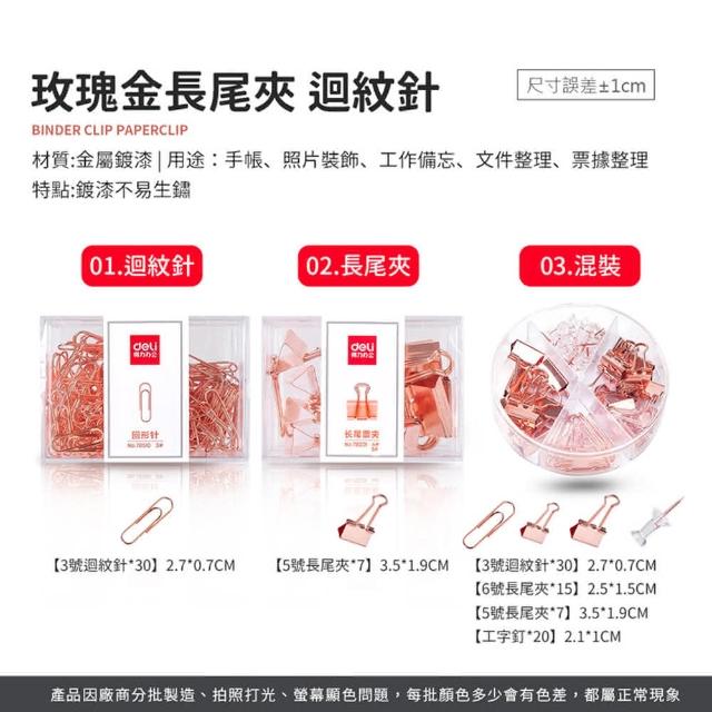 JOEKI玫瑰金長尾夾-混裝迴紋針 工字釘 強勁夾力 燕尾夾 文件夾 票據夾 金屬夾 圖釘 夾子 辦公文具