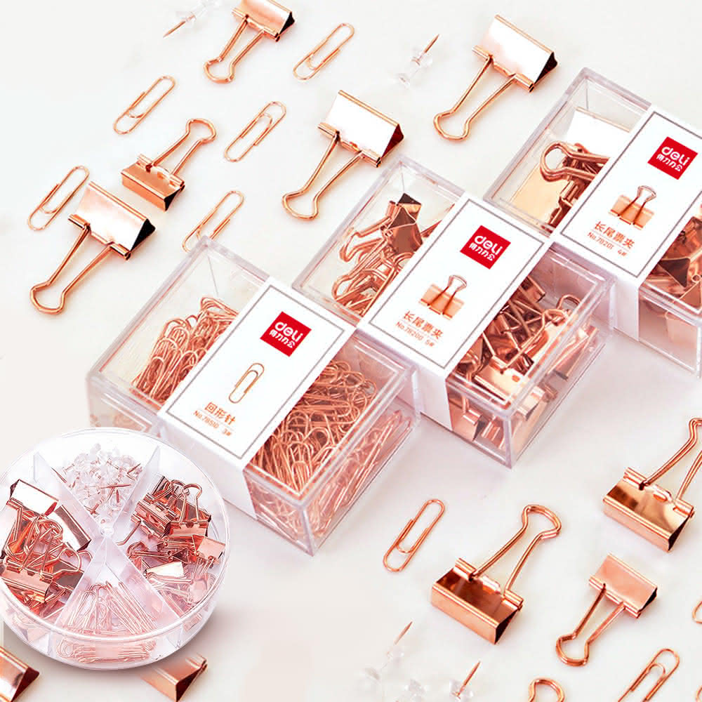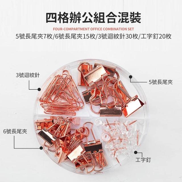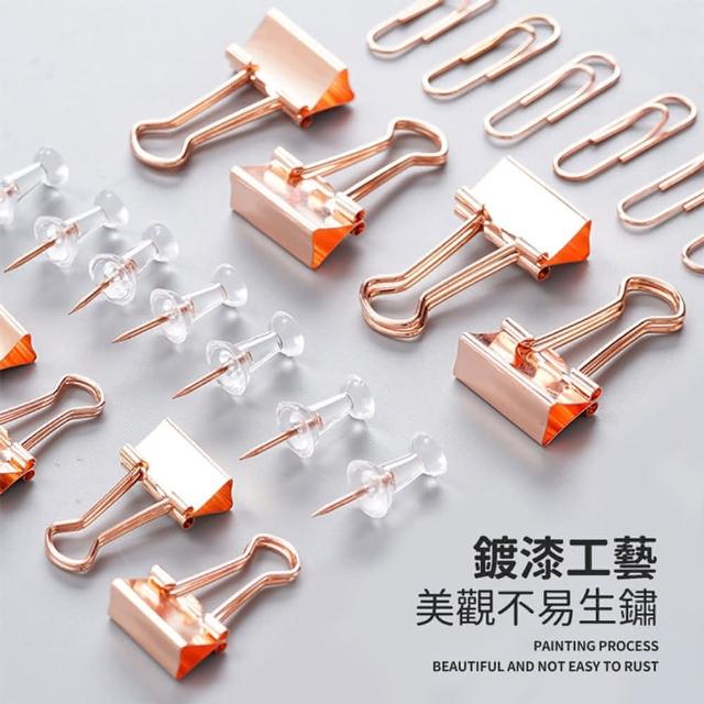 JOEKI玫瑰金長尾夾-混裝迴紋針 工字釘 強勁夾力 燕尾夾 文件夾 票據夾 金屬夾 圖釘 夾子 辦公文具