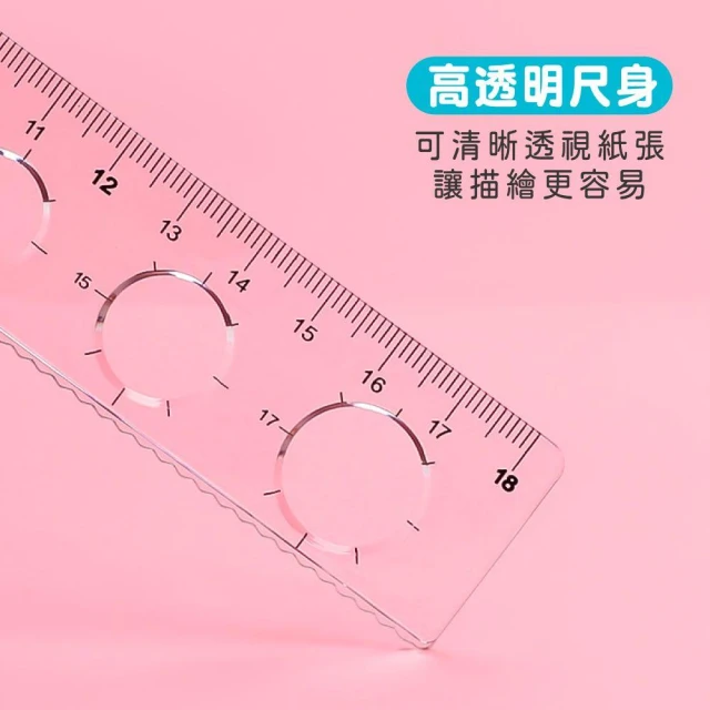 JOEKI透明洞洞直尺15cm精準測量 直尺 事務尺 波浪尺 文具尺 學生直尺 透明直尺 洞洞尺