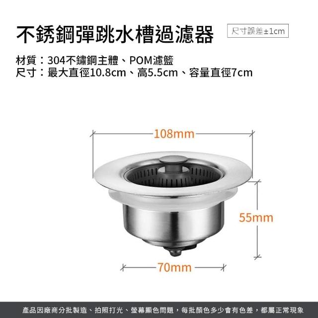 JOEKI不銹鋼彈跳水槽過濾器過濾網 304不鏽鋼濾網 廚房濾網 排水孔濾網 廚房水槽 洗手槽 堵水塞 防臭