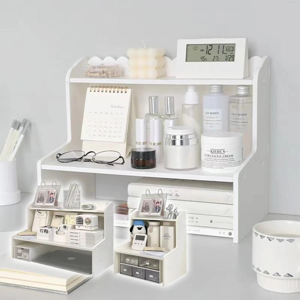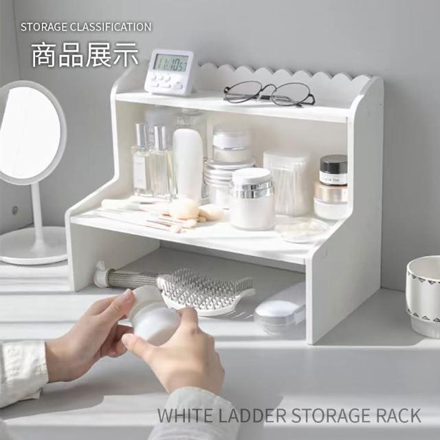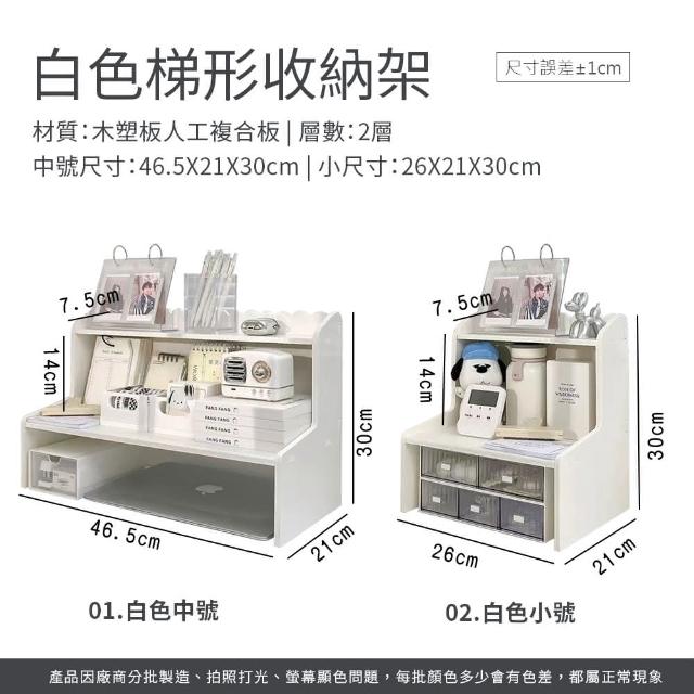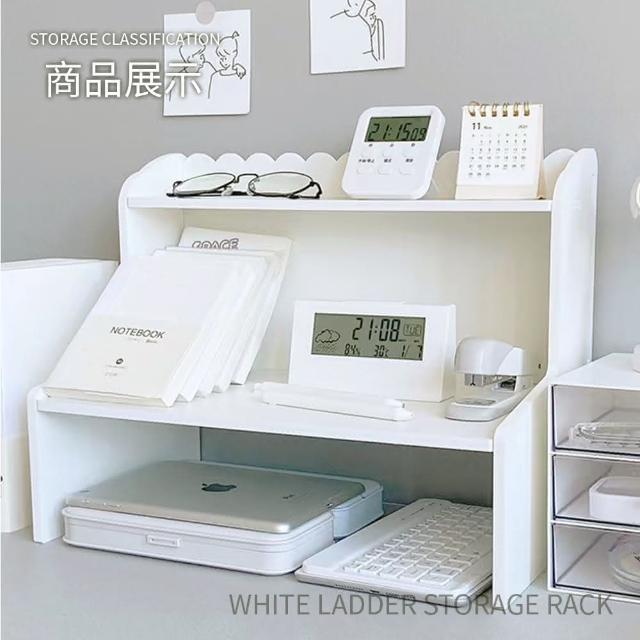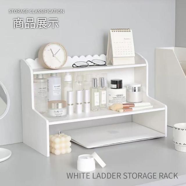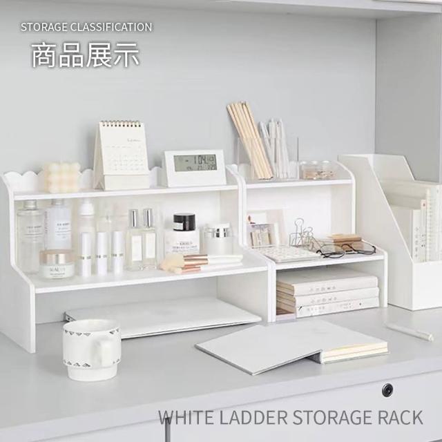 JOEKI白色梯形收納架-中Ins風 雙層置物架 文具收納架 化妝品收納架 書本收納架 桌上收納架 增高架