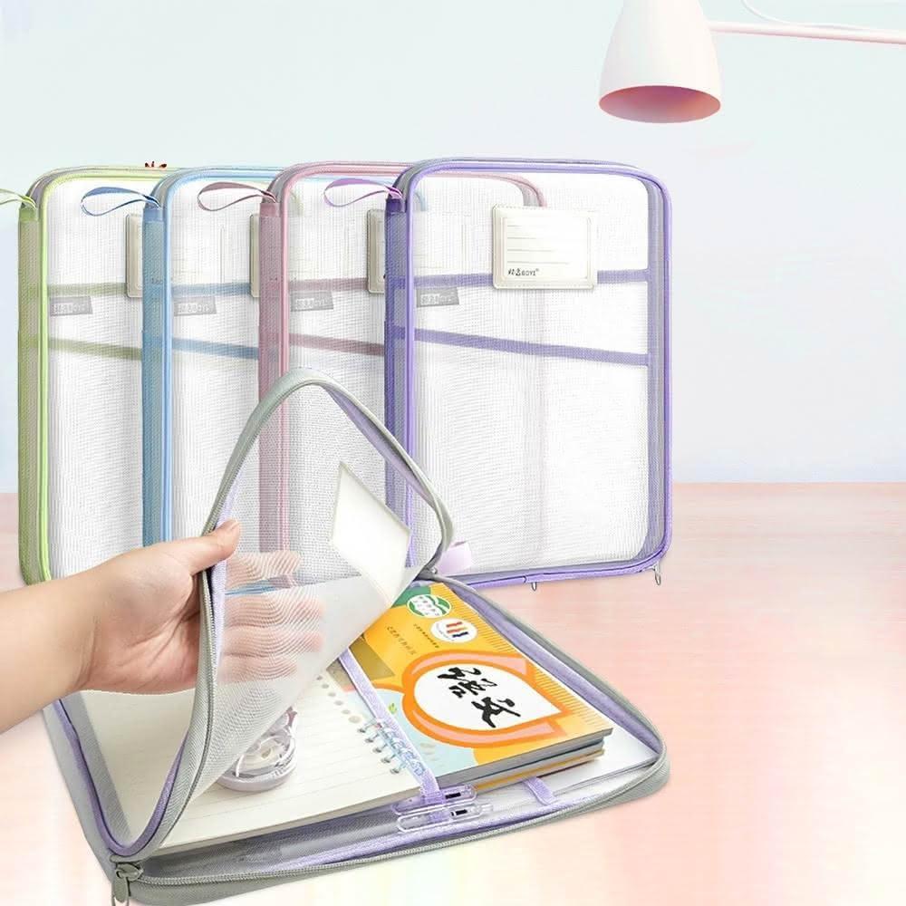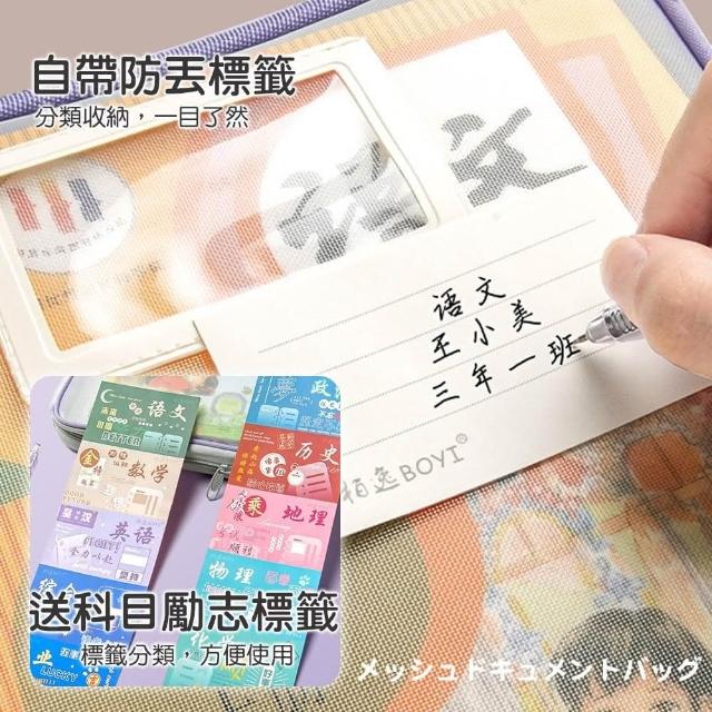 JOEKI網紗文件袋科目袋 文件袋 分類袋 書本收納袋 資料袋 收納袋 檔案袋 透明網紗 加厚大容量 學科袋