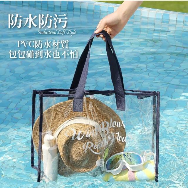 JOEKI透明防水沙灘包透明防水包 透明提袋 防水包 防水袋 游泳包 游泳袋 防水提袋 乾濕分離包 沙灘包