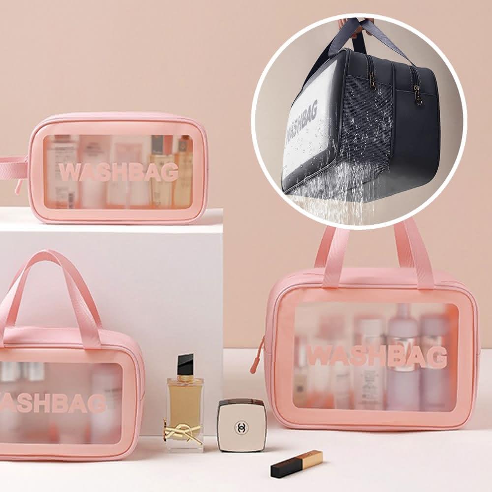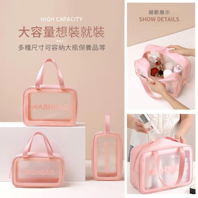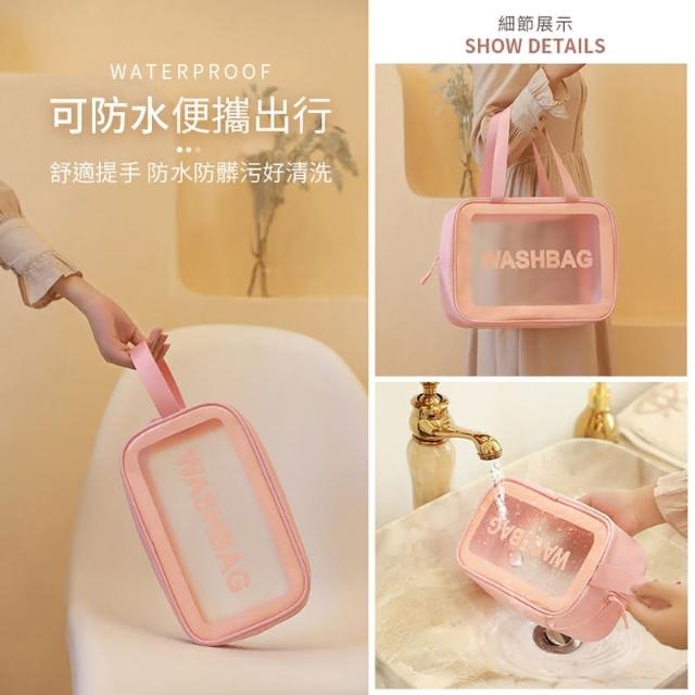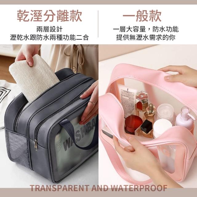 JOEKI透明防水化妝包-乾溼分離款中號旅行收納 磨砂包 透明包 防水包 防水收納包 盥洗包