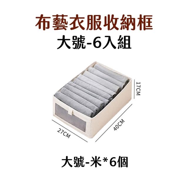 JOEKI布藝衣服收納框大號-6入組衣物收納框 棉麻收納框 布藝收納盒 衣櫃收納箱 可堆疊收納 可折疊