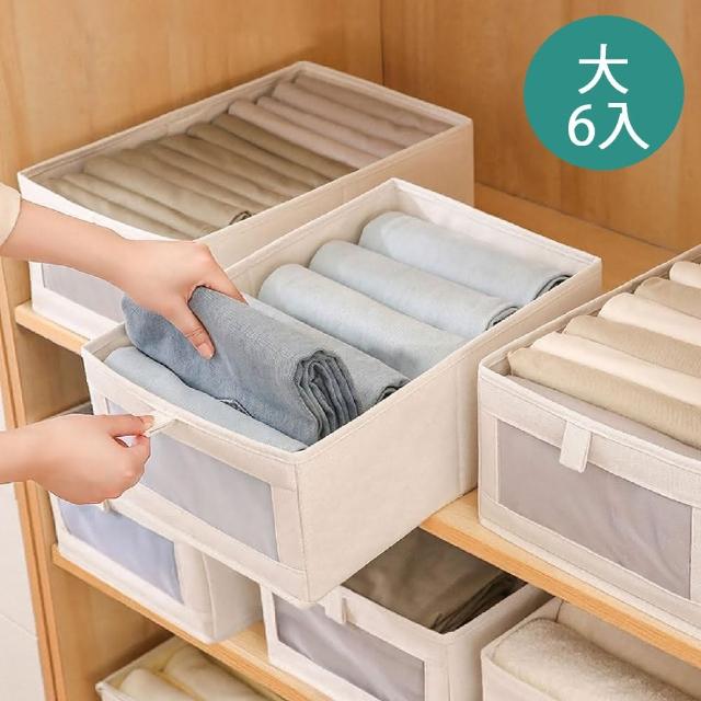JOEKI布藝衣服收納框大號-6入組衣物收納框 棉麻收納框 布藝收納盒 衣櫃收納箱 可堆疊收納 可折疊