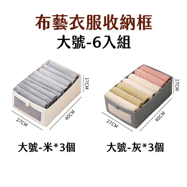 JOEKI布藝衣服收納框大號-6入組衣物收納框 棉麻收納框 布藝收納盒 衣櫃收納箱 可堆疊收納 可折疊