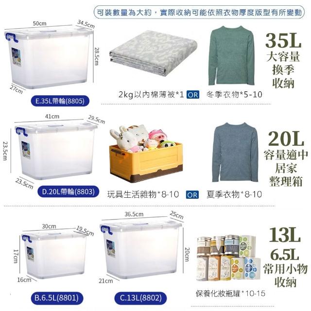 JOEKI大容量滑輪收納箱 3入(35L) / 4入(20L) / 6入(13L+6.5L) 多款尺寸任選 限宅配 ( 收納箱 整理箱 透明整理箱 大容量整理箱 衣物收納 換季整理 )