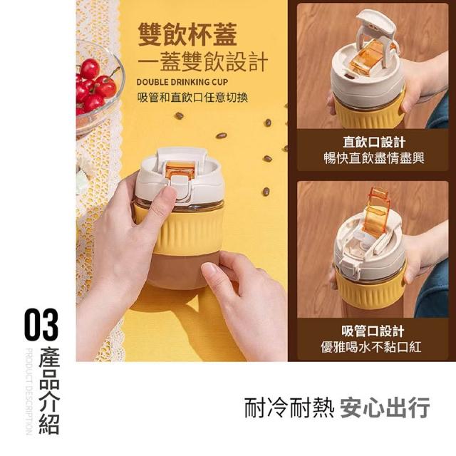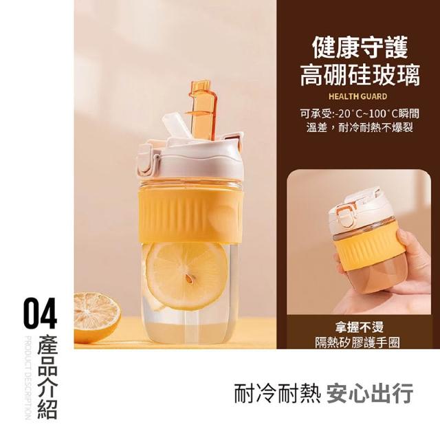 JOEKI兩用玻璃隨行杯 550ML 兩用 耐熱 玻璃 隨行杯 附可拆式吸管 馬卡龍色 CC0322