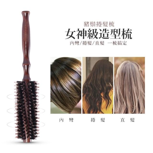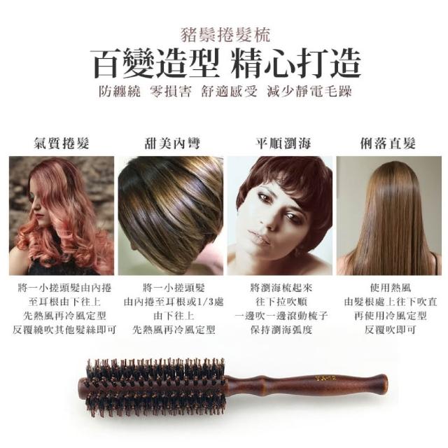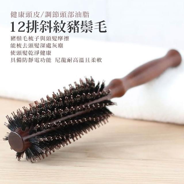 JOEKI豬鬃毛捲髮造型梳 原木豬鬃梳 圓筒梳 圓梳 捲髮梳 梳子 鬃毛梳 木柄梳 斜列梳 斜紋 原木 防靜電 捲梳