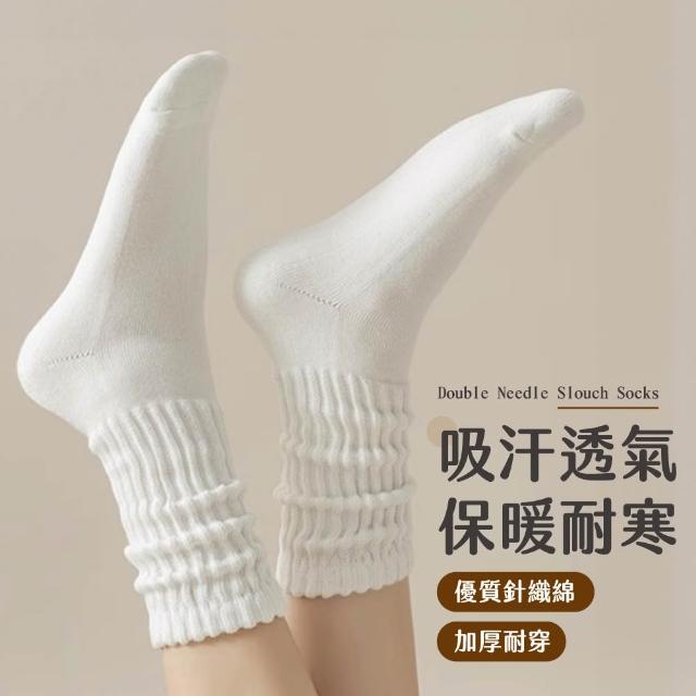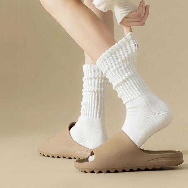 JOEKI雙針堆堆襪 透氣 簡約風 堆堆襪 棉襪 針織襪 中筒襪 長襪 素色襪 純棉襪 泡泡襪 襪子 白襪 女襪