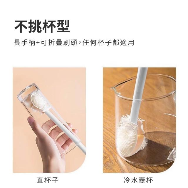 JOEKI矽膠清洗杯刷 長柄杯刷 杯刷 可摺叠刷頭 清潔刷 矽膠杯刷 奶瓶刷 水杯刷360°全方位清潔刷 清洗神器