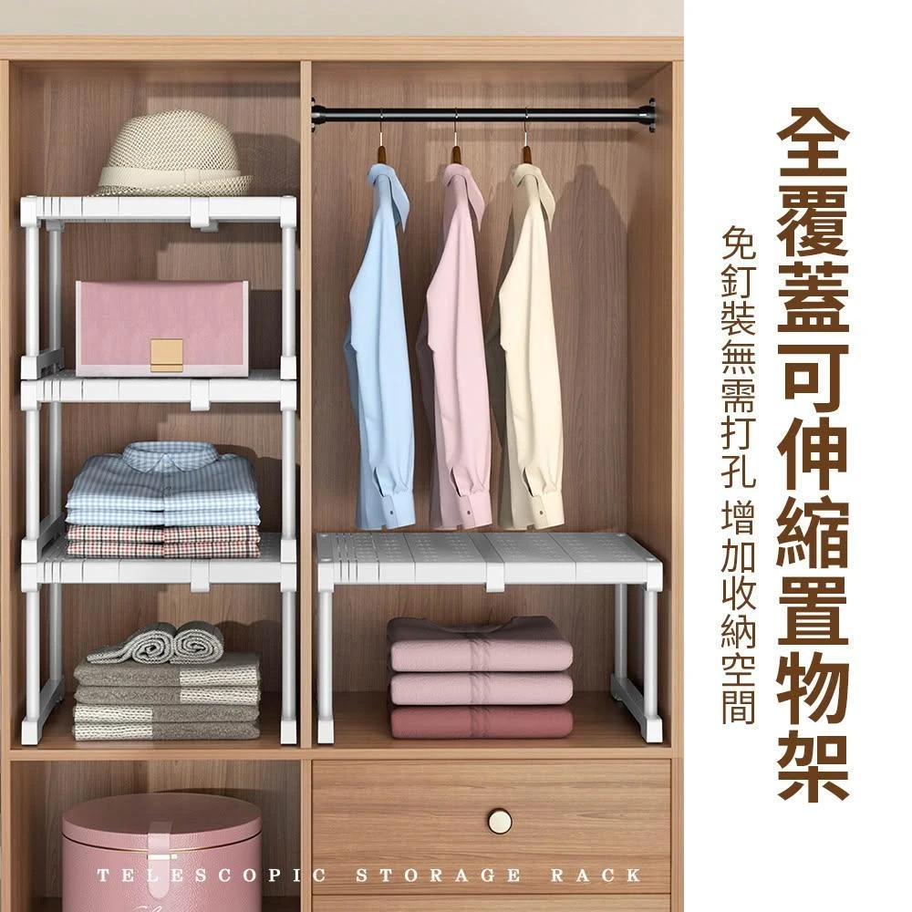 JOEKI伸縮置物架 長度37-48款-全覆蓋 伸縮隔板 可伸縮置物架 免釘 可疊加 衣櫃分層隔板 衣櫃收納 置物架 分層置物架