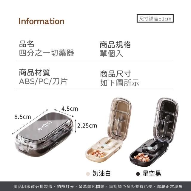 JOEKI四分之一分藥器 一分二切藥器 藥片分割器便攜 分藥盒 藥丸切割器 分藥器 藥片收納 藥片分割器 切藥器