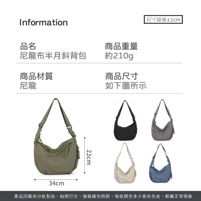 JOEKI尼龍布半月斜背包 日系 輕量 牛角包 韓版 斜背包 餃子包 側背包 肩背包 弧形半月包 包包