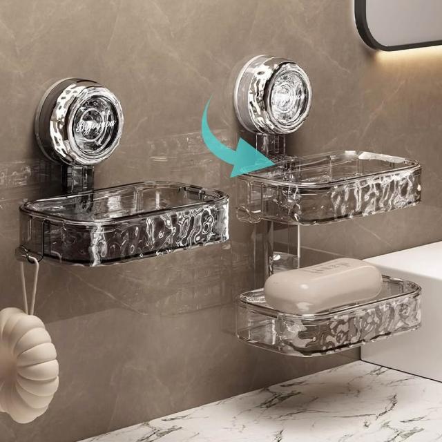 JOEKI輕奢波紋 吸盤肥皂盒 輕奢透明 肥皂盒 香皂盒 浴室置物架 壁掛盒 衛生間收納 置物架 廁所收納 肥皂盤