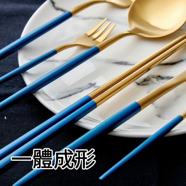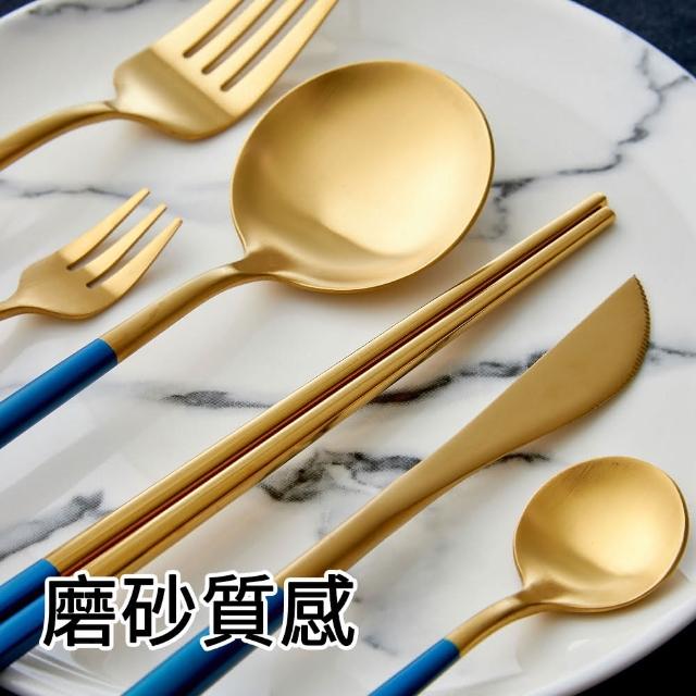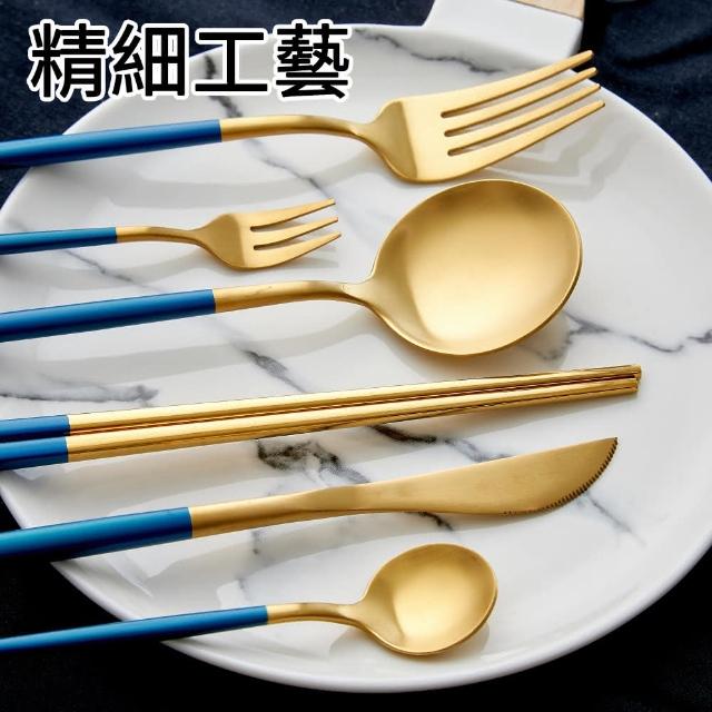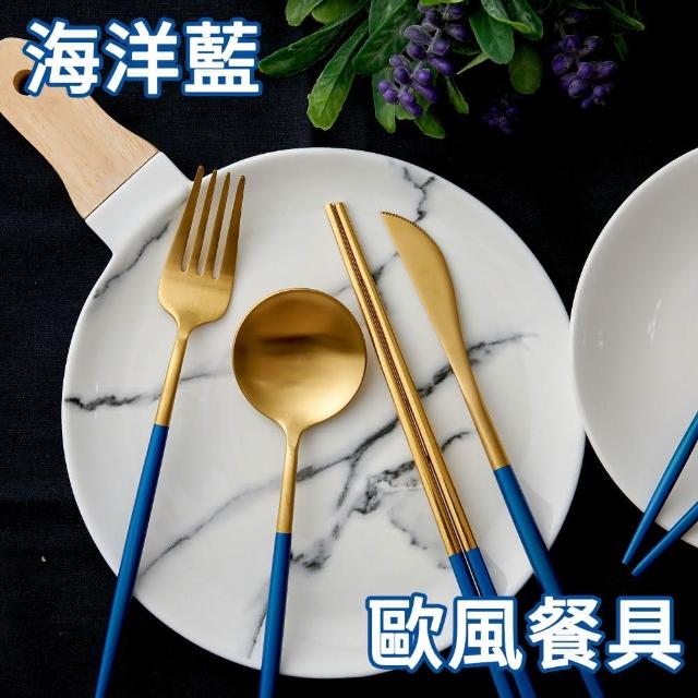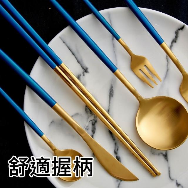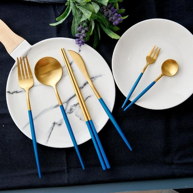 歐風304不鏽鋼藍金餐具(餐具 餐刀 餐叉 筷子 不鏽鋼餐具)