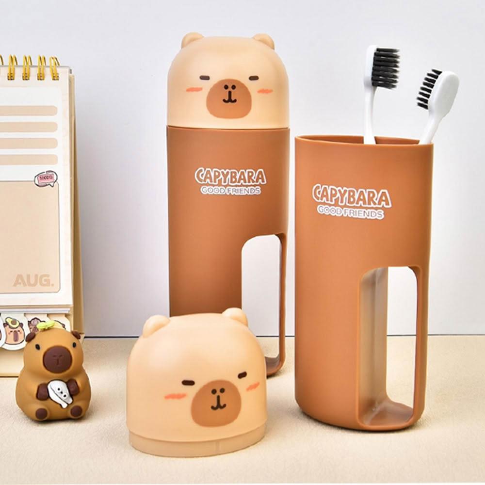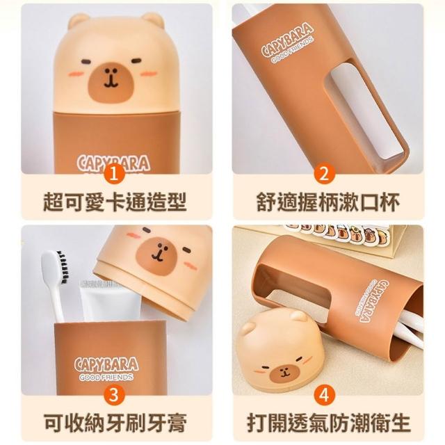 多功能卡皮巴拉漱口杯 (漱口杯 卡皮巴拉漱口杯 旅行牙刷收納 便攜水杯 可愛動物杯子 多功能漱口杯 杯子