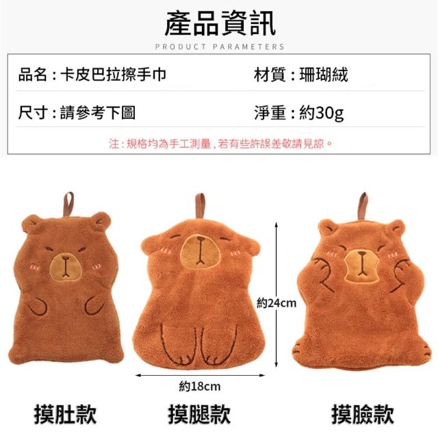 賣萌系卡皮巴拉擦手巾 (水豚君擦手巾 珊瑚絨擦手巾 可掛式擦手巾