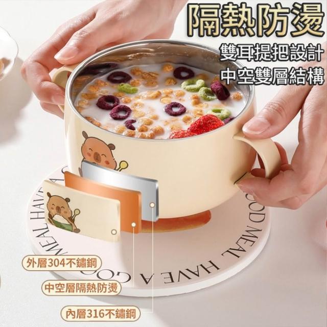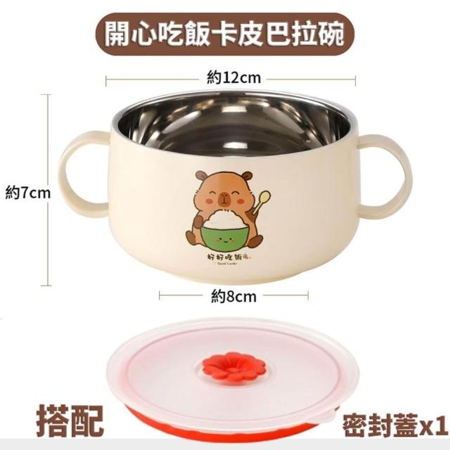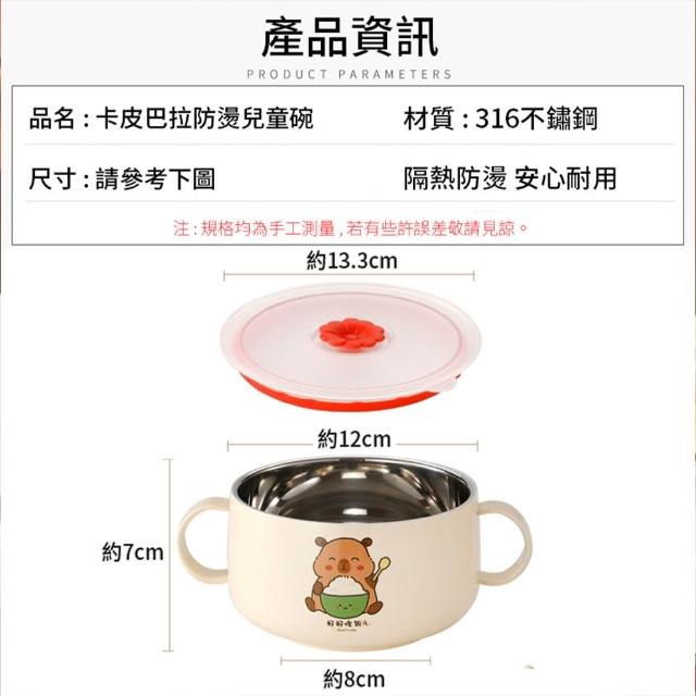 316雙層防燙卡皮巴拉兒童碗 (316不鏽鋼碗 兒童碗 防燙碗 雙耳防燙碗 )