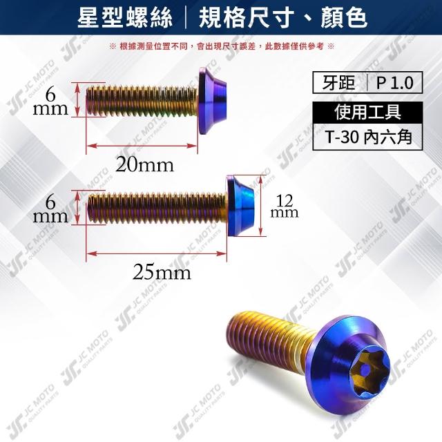 JC-MOTO 鍍鈦螺絲 星型 車牌螺絲 鍍黑 防盜 機車 梅花六角 白鐵 M6 P1.0 2入組