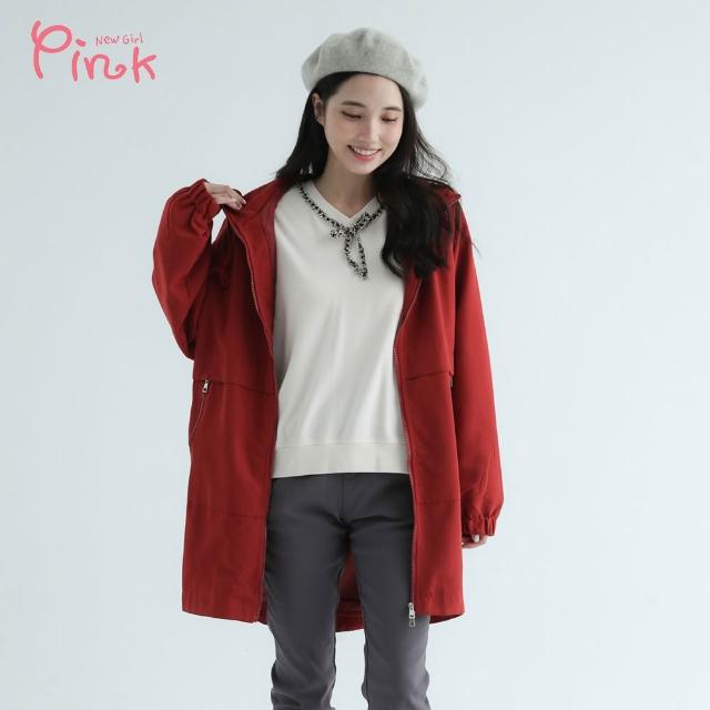PINK NEW GIRL連帽中長版風衣外套 X3701CE