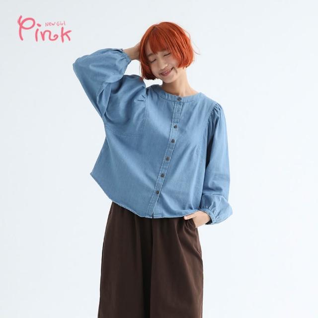 PINK NEW GIRLPink* 丹寧圓領微澎袖襯衫 (2色) Z1206AD