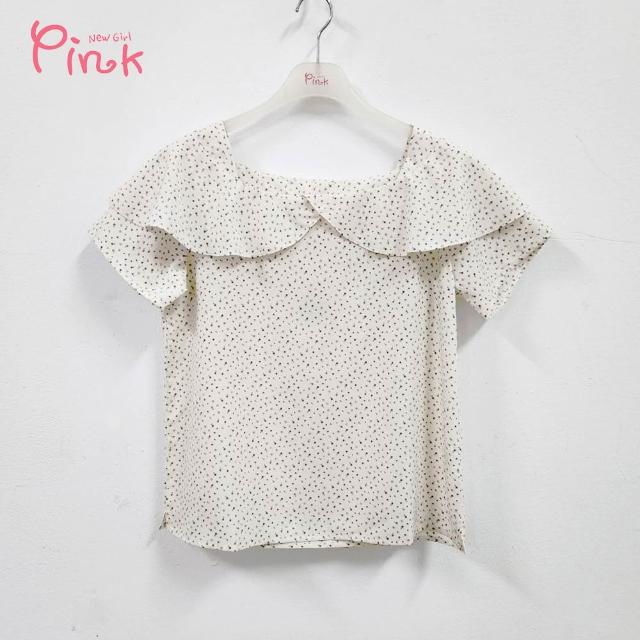PINK NEW GIRLPink* 小星星荷葉袖造型上衣 (2色) A2207AD