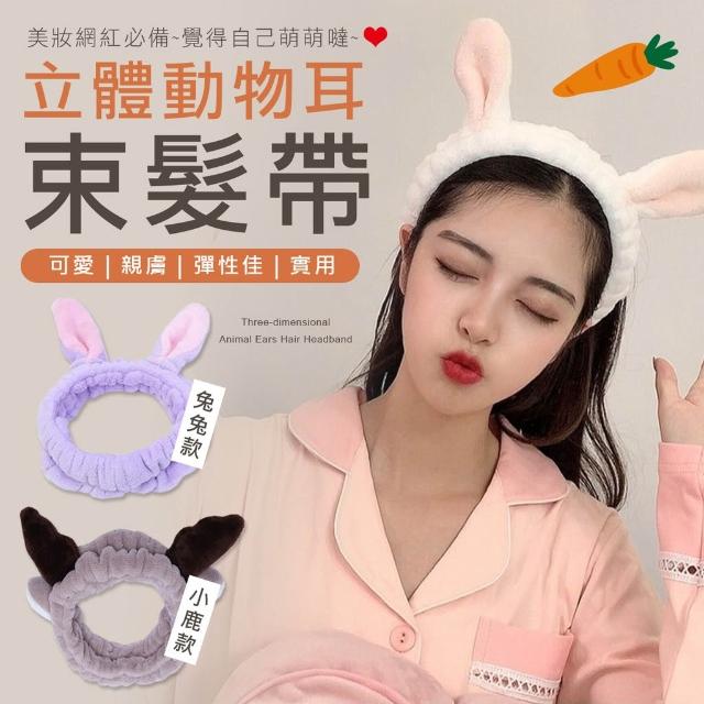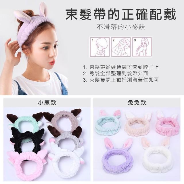 珊瑚絨立體動物 浴帽 洗臉帽 化妝 髮圈 鹿角 兔耳 束髮帶 髮飾