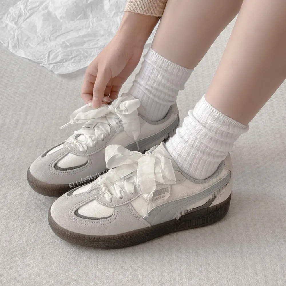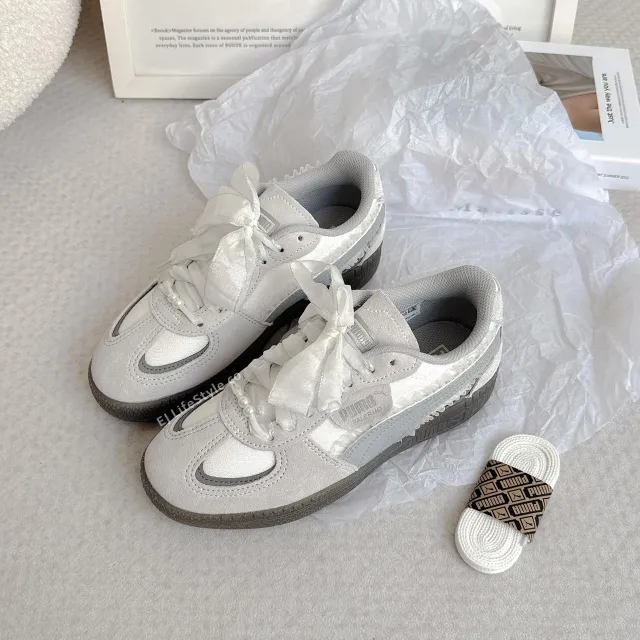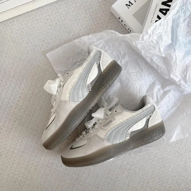 PUMA-EJ- 現貨 PUMA PALERMO 珍珠蕾絲灰 白灰 焦糖底 女鞋 401286-01