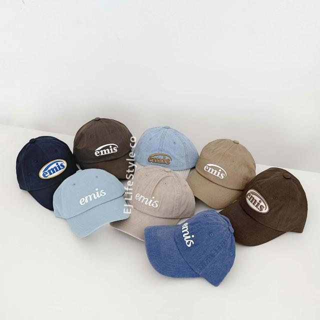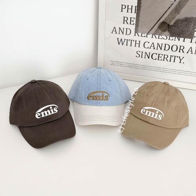 emis🇰🇷 EMIS 刺繡老帽 復古 LOGO 丹寧 牛仔拼接 棒球帽 / 現貨