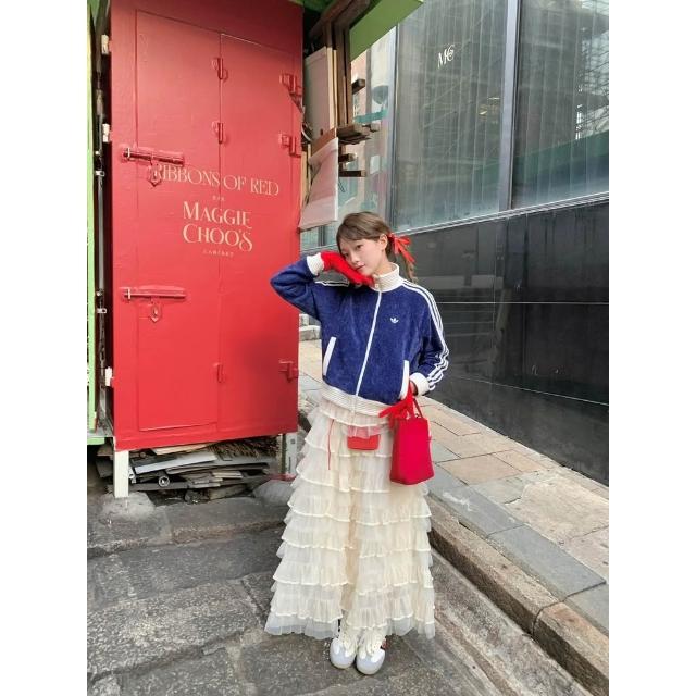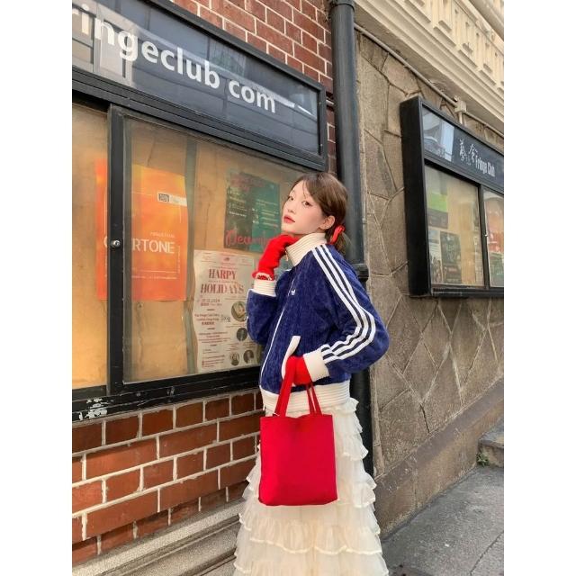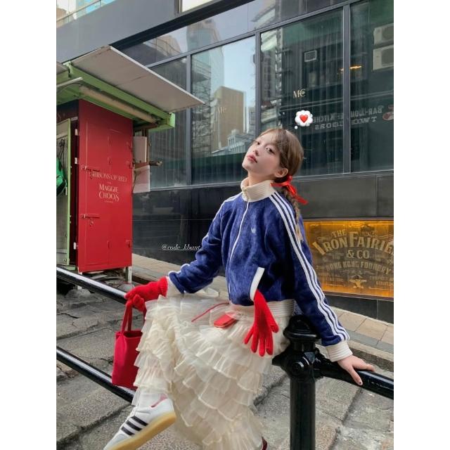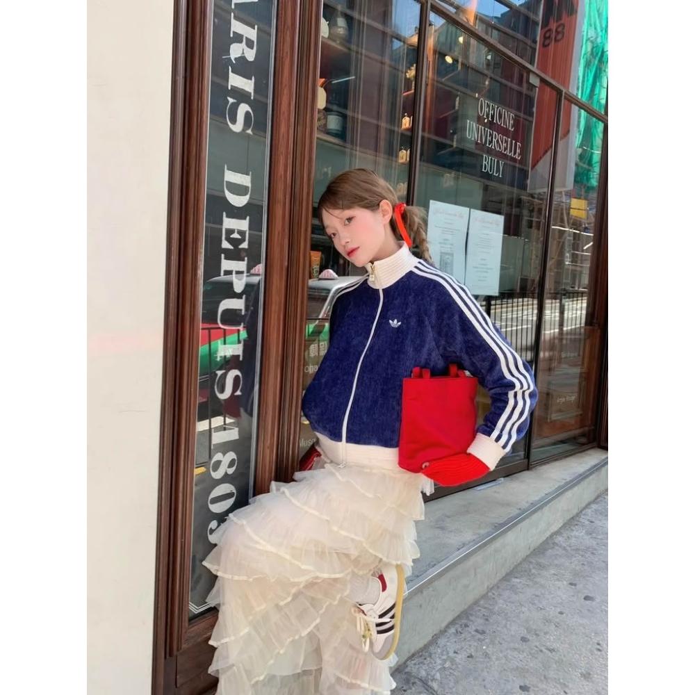 adidas 愛迪達-EJ-ADIDAS ORIGINALS RETRO 蛇年限定 絲絨 外套 海軍藍 奶油白 女款 JN0724 / 現貨