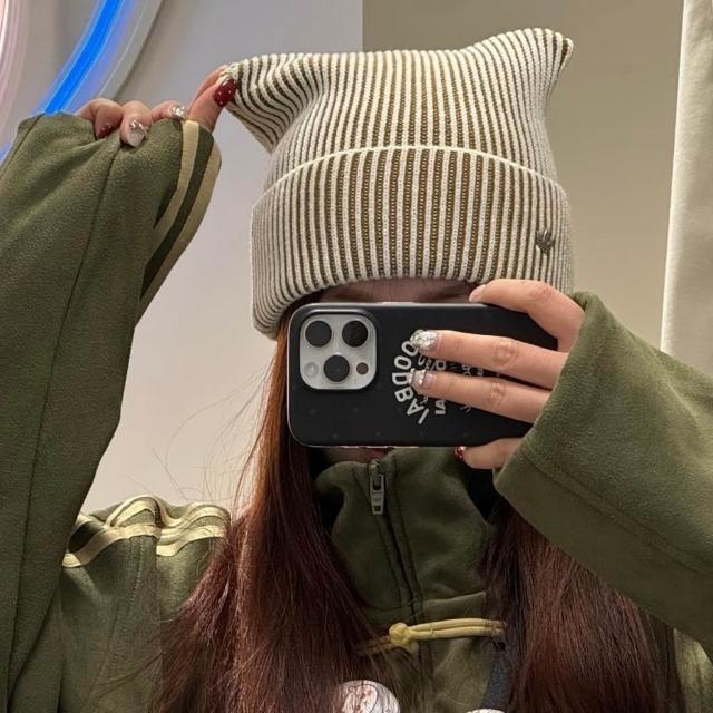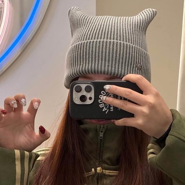 adidas 愛迪達ADIDAS 條紋針織 貓耳帽 毛帽 冷帽 針織帽 保暖 灰色 IA8909 奶油焦糖 IA8910